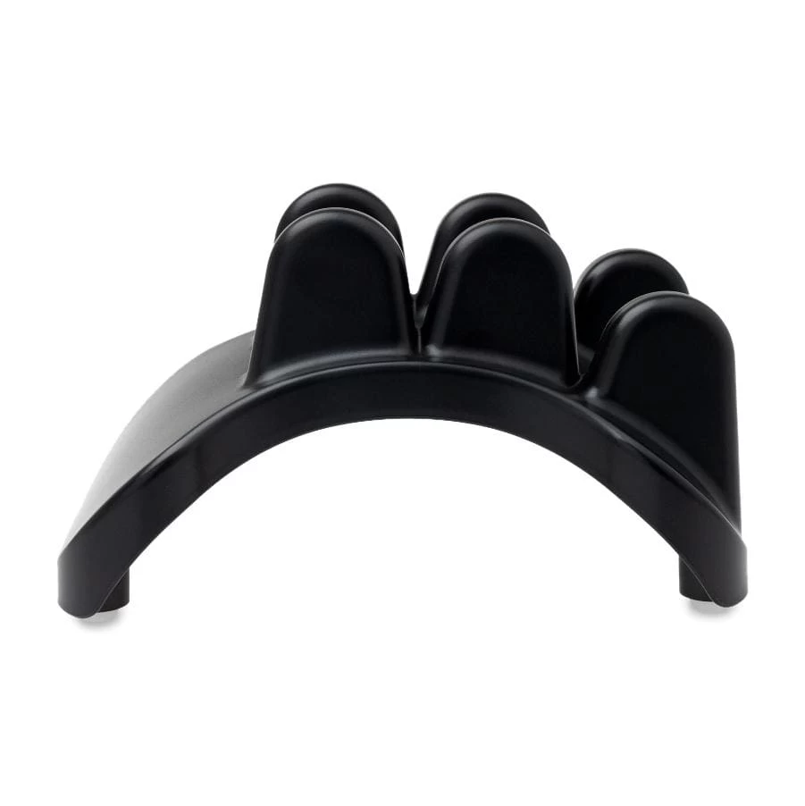 The Pso-Neck has multiple nodes that are equivalent to the hardness of a therapist’s thumbs. These nodes penetrate the exact areas where trigger points develop from poor posture. The gentle curve of the device props the cervical region of the spine up to provide traction and create space between vertebrae, offering instant relief from travel, a long day at the computer, or a tough strength training session.