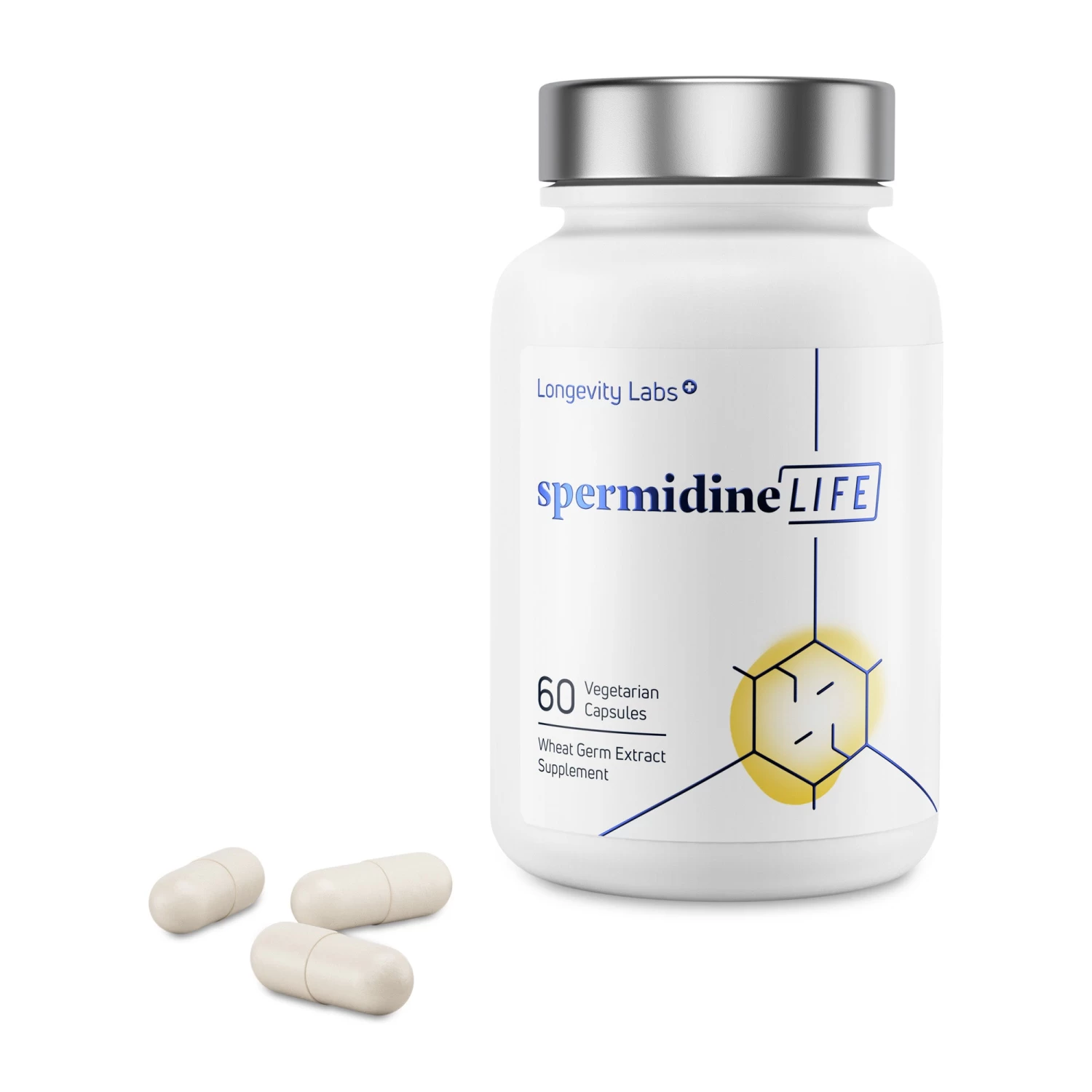 This dietary supplement is made with Spermidine-rich wheat germ extract, zinc and Vit B1.